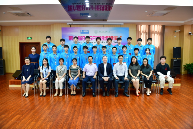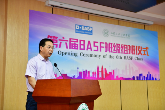 巴斯夫化工有限公司营运总监陈万锁先生在开班典礼上,简单介绍了巴斯夫公司从2002年在漕泾组建,2005年第一套装置投产,到2019年第6套装置投产,公司的一步步发展,给同学们带来了个人职业发展的良好机遇,同时也对学员们提出几点希望:首先在校好好学习理论基础知识,理论指导实践,学会融会贯通,提高专业水平。其次,要有健康的生活方式,加强锻炼,有好的身体,才能胜任工作。并且要关注化工行业,了解化工的特点,养成终生学习的习惯,才能适应不断发展的化工行业对人才的需求。