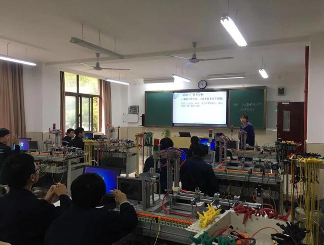 2019年10月11日上午,机电科智能控制组教师鄢熔熔在特教中心204机电一体化实训室开设了公开评议课。授课班级为171机电02班,课题为《任务二 产品数量统计的PLC程序设计》。校党委书记林国新、校工会主席迮育彪、人事科科长江四龙、教务主任邵喆等6位教师观摩了此次公开课。
