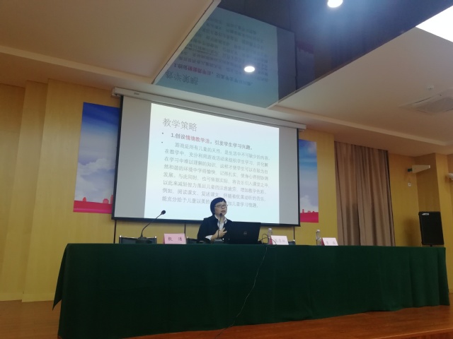 张老师讲解了判定智力障碍与否的标准,并阐述了其形成的三种原因。随后,张老师解释说明了智力障碍人群在知觉、记忆、语言、思维、注意力以及个性方面的表现。对于自闭症孩子来说,他们缺乏社交能力,语言沟通能力和想象力,他们行为刻板,模式单一;但是,他们也有高于常人的特殊的记忆能力:如记忆数字,特征识别,标签命名,分类处理等,充分展现了另一种智力运作模式。鉴于特殊学生的心理和个性特征,张老师结合冯楠老师当天开设的公开课提出,将“自主决策”纳入教学过程。“自主决策”是指学生自主设定目标和计划,并履行一连串的行动,能够评价自己的表现,还能为了达到目标而调整自己的行为;第二种教学策略就是运用现代化教学手段,激发学生兴趣,集中学生注意力,如微课等信息技术的运用。最后张老师强调,孤独症是可教育的,只要教育方法得当,方式得法,特教教育定会硕果累累,特殊学生终会敞开心扉。
