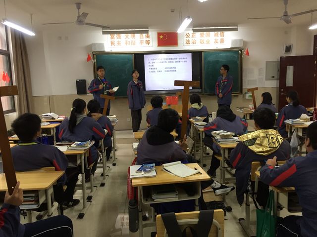 此次统战知识竞赛由班级团支书孙雅婕、团员沈澌涛和入团积极分子王杰主持。比赛有选择题和填空题两种题型,全班同学分为6个小组,以抢答的形式进行比赛。当团支书孙雅婕读完题目,沈澌涛同学说完3、2、1后才可以用道具抢答,答对了小组加一分,答错了不扣分。道具是画图时所使用的丁字尺,在抢答时每个小组都很积极:有的小组在沈澌涛同学没有喊完3、2、1就开始举起丁字尺了,导致他们小组犯规,失去了此次答题的机会;有的小组举牌的人很慢,没有抢到题目,他们整个小组的人都很沮丧;还有的小组很谨慎,在抢到题目后会进行讨论,选出一个最正确的答案。比赛过程十分激烈,现场气氛特别紧张,各个小组的比分都咬的很紧。最终,经过一番角逐后,比赛落下了帷幕。