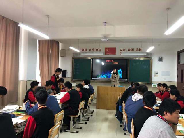2019年11月12日中午,在南区博学楼203教室,基础科罗茜老师开设了一堂《荷塘月色》的公开课,基础科科长邵宝勤、基础科副科长于燕娜以及部分语文组老师到场观摩。