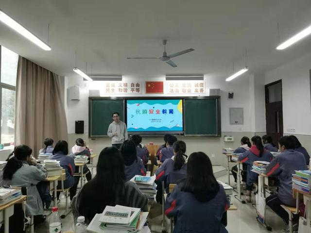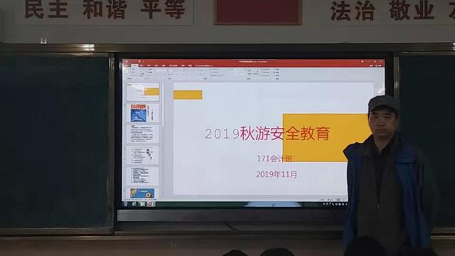 秋高气爽,景色宜人。下周将迎来本学期全校学生的秋游活动,为加强学生的安全教育与纪律教育,11月13日下午经贸一组各班级利用班会课的剩余时间,召开了学生秋游安全教育主题班会。