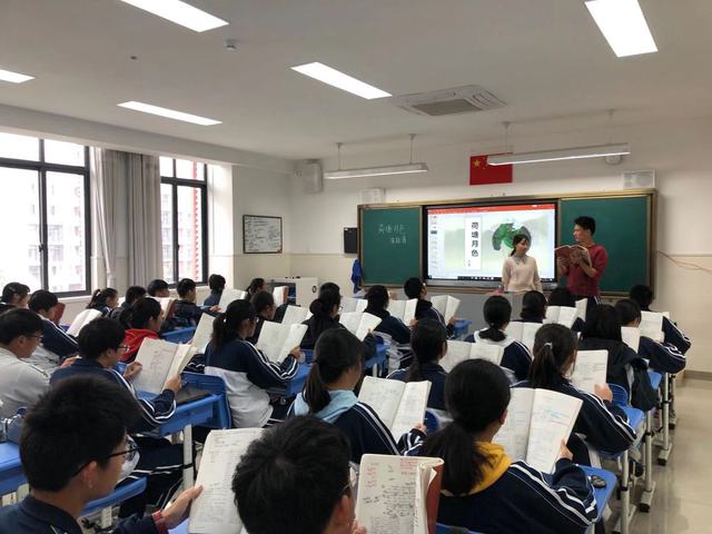 高一6班的全班同学在语文课代表的领读下,共同诵读经典美文的这一场景,给听课老师留下了很深印象,也正式拉开了语文课的序幕。语文教师从“荷花”着手,引导学生们回忆与荷花有关的经典诗文,调动了学生参与的积极性和学习的兴趣,并在学生回答后,进一步引导学生总结荷花的特点和品质,进行思维品质的训练和提升。不仅如此,教师还就上节课的内容,和学生们一起做了回顾。比如文章的结构,作者的游踪以及心态的变化,让学生在脑中有了一个清晰的课文架构图。