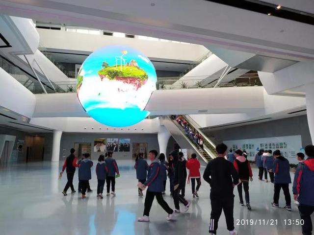 美景尽收眼底、美食饱尝腹中,学生们来到本日活动的第二站:著名的秦山核电科技馆。秦山一期核电是中国最早的核电厂,秦山核电基地是中国当今最大的核电基地。秦山核电科技馆展区面积超过8000平方米,是中国最大的核电科技馆。同学们饱览了核电一期到三期的发展,了解了整个秦山核电的发展过程。观看了火电、水电、生物质能发电的发电厂构造,对于核电站主要的能源物质“铀”从铀矿的勘探、同位素的分离、加工至燃料棒的工序有了基本的认识。美观大气的全息影像向我们阐述了核电的防辐射措施;精致逼真的控制室模型,向我们展现了更换燃料棒的过程。展馆的现代展现手段给同学们留下了深刻的印象,大家都赞叹不已。