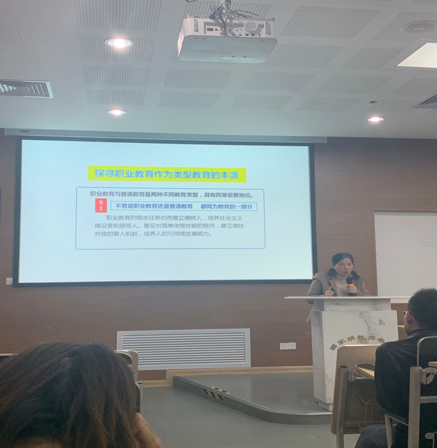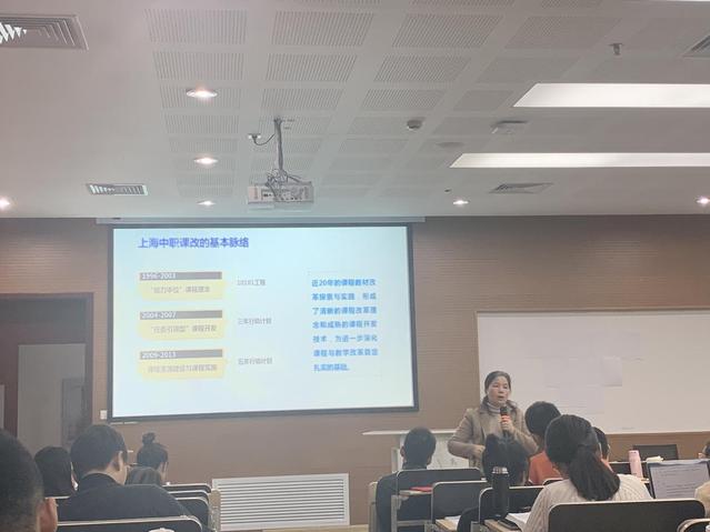 2019年11月27日,为促进上海市中等职业学校新进教师的成长,提升其专业素养和职业素养,第六期上海市中等职业学校新进教师规范化培训在华东师范大学(中北校区)田家炳楼225教室开展,本次培训以“上海市职业教育总体情况”为主题,主讲嘉宾是曾海霞教授。我校新进教师罗茜、董慧参与此次培训。
