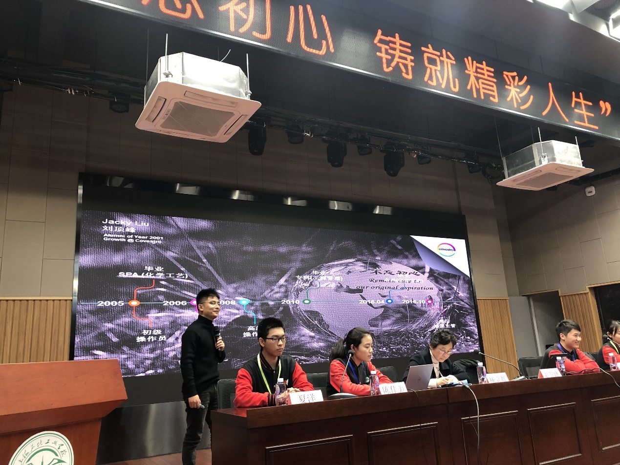 刘顶峰学长率先分享了自己的发展经历,他自我校化学工艺专业毕业后,从一名初级操作工逐步成长为知名外企的主培训师,看似一帆风顺的背后,付出了多少努力。他给同学们讲了一个故事,说一名虔诚的基督教教徒每天都会向上帝祷告,他每天祈祷的内容就是:“上帝,请保佑我中一次彩票大奖。”可是他一直都没有中奖。终于等到他第一万次祷告的时候,上帝出现了。上帝恶狠狠得对他说:“你祈祷了一万次,倒是去买一张彩票啊!”他用这个故事告诉大家,想要获得成功,首先得付诸行动。