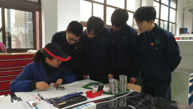 对此数控应用组组织了专题研讨,分析学生心理。老师们达成共识,在教学过程中关注学生心理,教学结合生产应用,让学生知道自己所学将有所用。作为具有二十多年班主任工作经验的王永清老师,在教学中一直比较关注学生的心理变化,在检测评价时让学生一起参与,共同分析问题所在,学生感觉不是一个人在战斗,增加了学习的积极性,也更愿意把学习中的困惑与老师分享。日常教学中经常留意学生情绪的变化,及时沟通。结合暑期下厂实践经验所得,告诉孩子们工作时会怎样,和我们的实训区别在哪,以后在企业里碰到类似问题我们该怎么处理。在数控实训教学中,我们经常采用小组合作学习的方式,老师引导小组同学间该如何分工协作,碰到组员间的矛盾带教老师及时加以化解,通过学习过程既掌握了专业技能又学会了如何与人相处,促进了教学有效性。