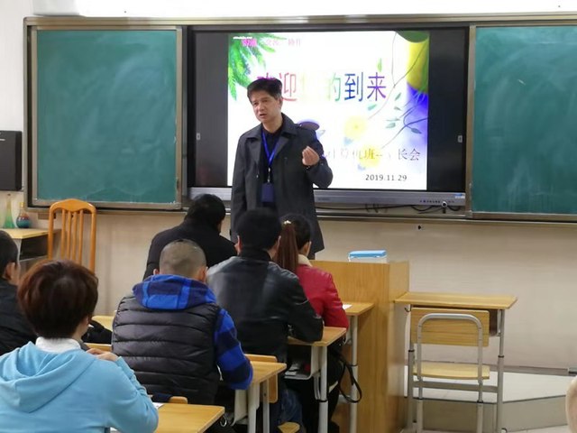 接着,陆老师又向家长们介绍了二年级学生即将面临的就读和就业问题,通过这次期中考试,和家长们再次强调了水平测试考对学生将来选择就读还是就业的重要意义。除了学业之外,还要遵守校纪校规,行为规范,为人处世的培养等,也期望家长能在家里多督促孩子,多吃健康食品,少玩手机游戏,多锻炼身体,身体是革命的本钱,光老师在学校不停劝导孩子少吃垃圾食品是远远不够的,也希望家长能配合老师,一起教育孩子,改变孩子的饮食观,为以后升学或就业顺利通过体检,提前做好就业身体上的准备。