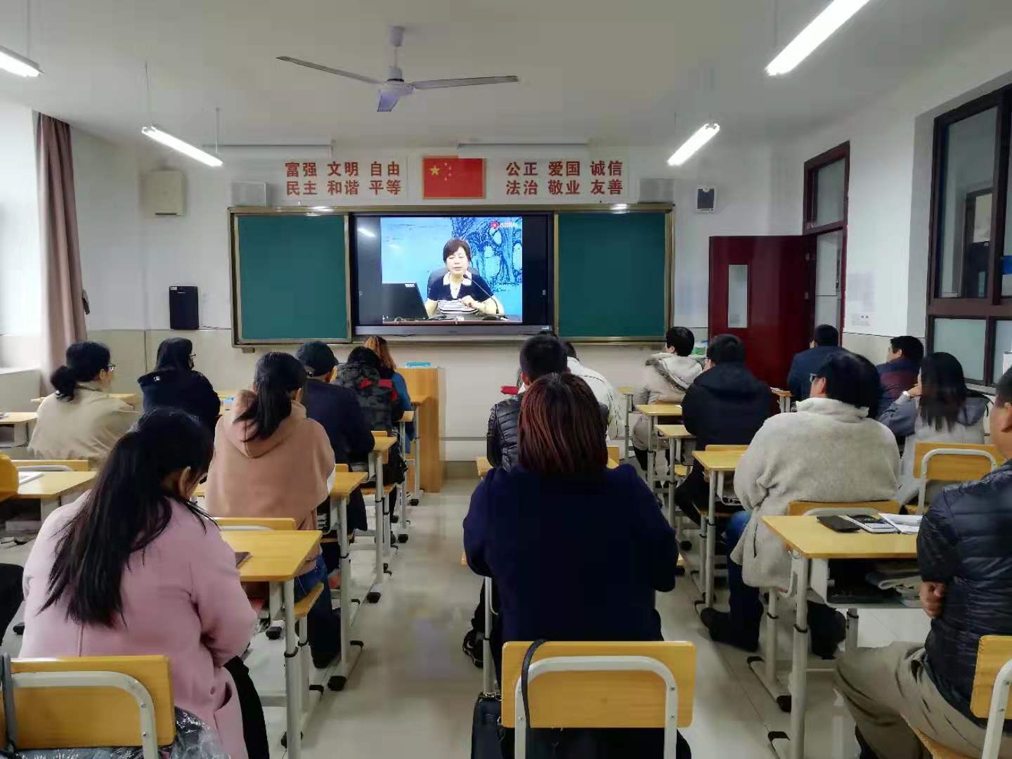 接着重点与家长探讨与青春期孩子沟通的话题,首先播放了由北京公安大学教授李玫瑾主讲的两个视频:如何与叛逆期的孩子沟通和如何正确处理早恋问题。建议家长在与青春期的孩子沟通时不能简单的用命令或强制的口吻要求做什么,家长应学会用对待成人的方式与其沟通或商量;家长在对待孩子早恋的问题上应保持冷静,选择合适的时间和方式进行交流,简单粗暴的阻止只会适得其反。然后蔡老师分析了班级中出现的一些情况并分享本人在教育自己子女时的一些案例和心得。