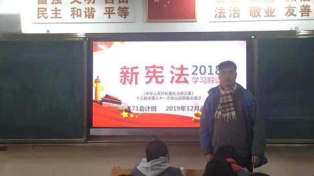 为深入学习贯彻落实党的十九大精神,进一步推动全校师生学习宪法知识,增强法治意识,12月4日下午,经贸一组各班开展“宪法伴我同行”主题班会活动。