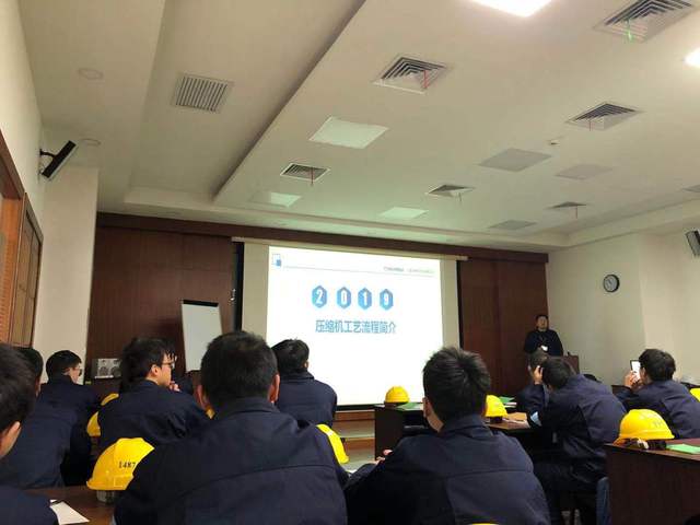 在最后第二天实训中的上午,191数控01的同学们回到公司总部参观。了解到公司的核心产品和技术,例如:压缩机、真空泵,以及全自动化FMS,FMS是自动加工生产线,是公司高科技产品之一。之后,同学们又参观了压缩机的零件加工,了解到压缩机的核心零件“阴阳转子”,以及关于阴阳转子粗加工、精加工方面的知识,知道了不仅有螺杆式压缩机,还有双螺杆式压缩机,到最后也对一些其它设备进行了解。