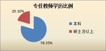 专任教师全部达到本科及以上学历,其中具有硕士及以上学历的39名,占专任教师的20.10%,与2018年基本持平。(专任教师学历比例如图4所示)。