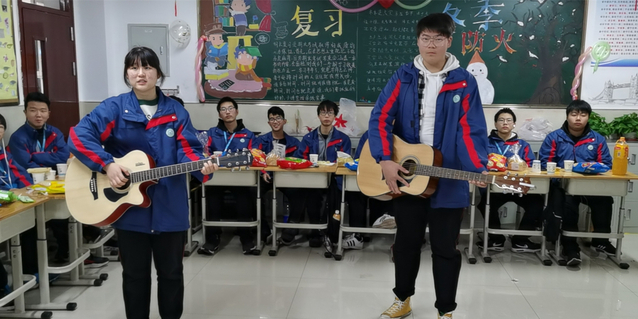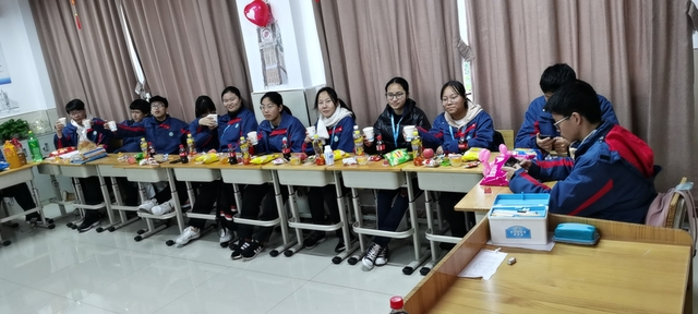 彩带、气球、窗花……同学们精心准备,把教室装扮一新,处处洋溢着欢乐祥和的节日氛围。联欢会上同学们热情高涨,积极参与,充分发挥自己的特长,自导自演了一系列节目,形式不拘一格,内容丰富,精彩纷呈,有歌曲、舞蹈、器乐演奏、诗歌朗诵、趣味游戏等。同学们个个神采飞扬,笑声、掌声此起彼伏,歌声、呼声交相呼应,师生共同沉浸在温馨、欢乐的节日气氛中,享受着辞旧迎新的喜悦,互道新年的美好祝愿。