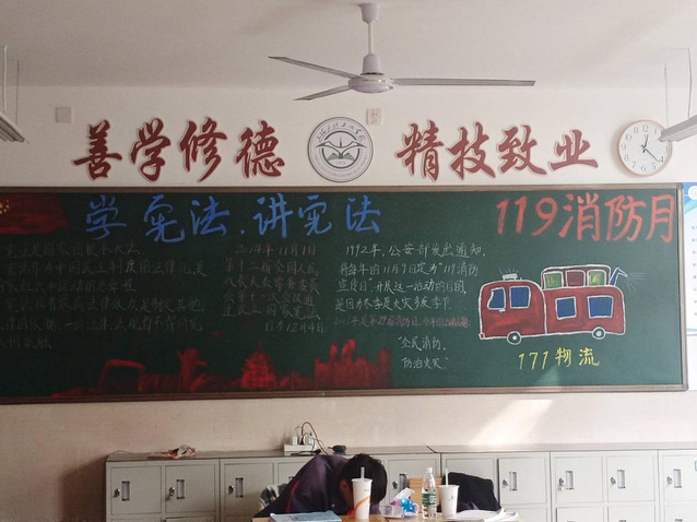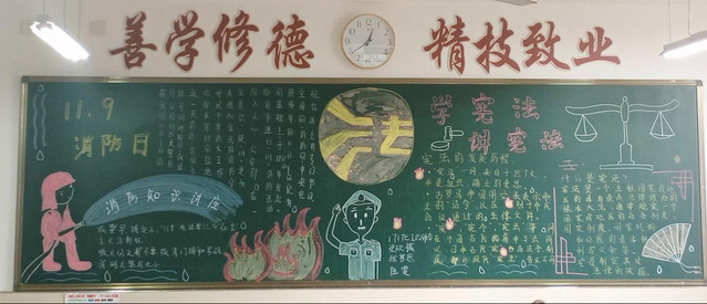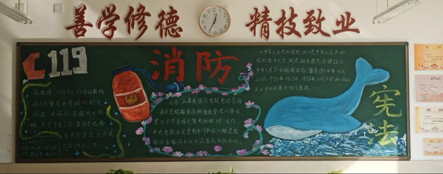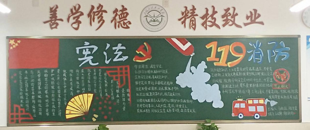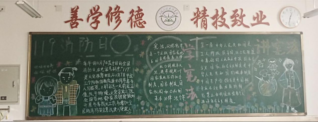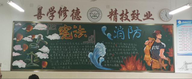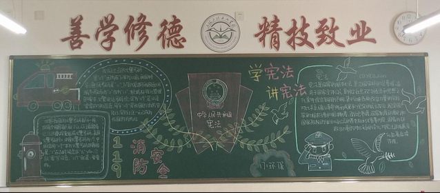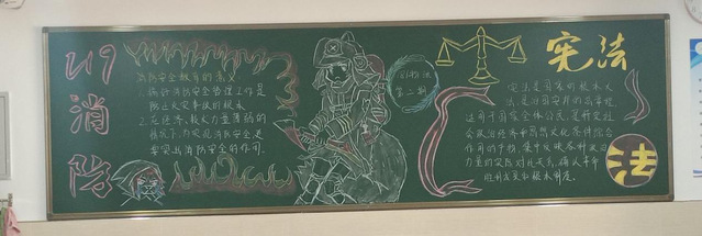 颜色鲜艳字迹清楚黑板整体干净整洁宪法与199消防用色也极为突出。