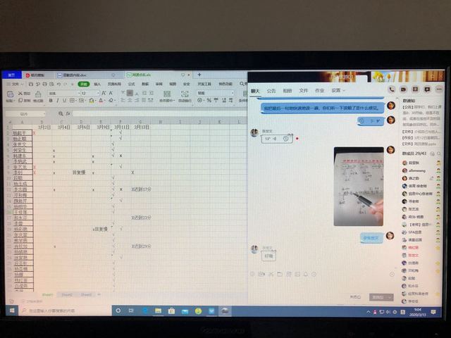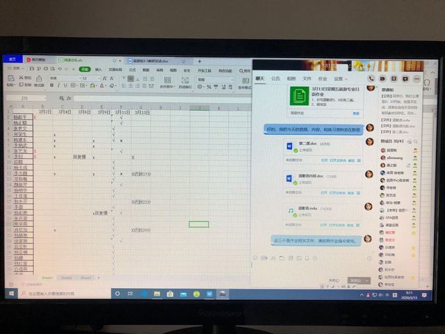 首先,对于学生网上“迟到”问题。每天班长或课代表发起签到,总有几位同学姗姗来迟,或者干脆不出现。或者是,有些同学签到了,但在提问环节却不知所踪。于是第二周起,老师安排课代表进行点名,准备了网上点名记录表,并把每天记录的缺席、迟到、在线问答无反应的学生,直接公布,声明记入平时成绩,请班主任帮忙协调。这样操作一周之后,到了第三周,情况明显好很多,交作业的人数也有所增加。