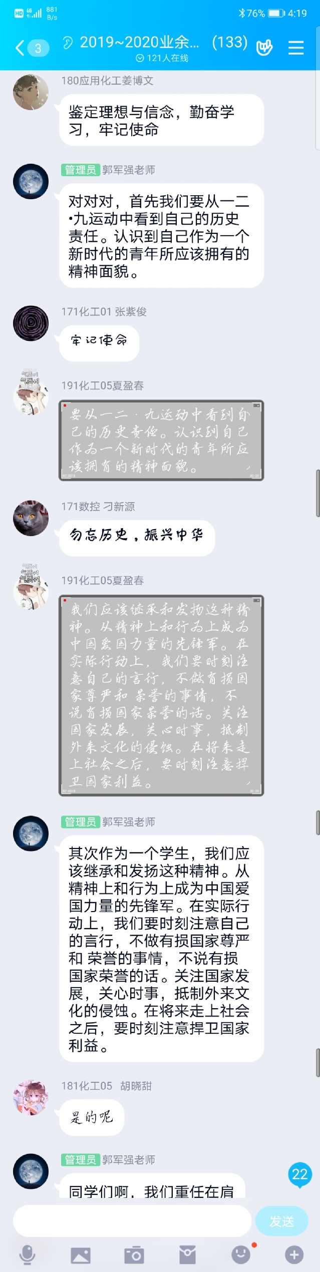 4月1日下午,校团委组织入团积极分子们开展第五次主题团课——纪念“一二·九运动”。本次团课由郭军强老师通过线上互动的形式,为入团积极分子们带来了团课学习。