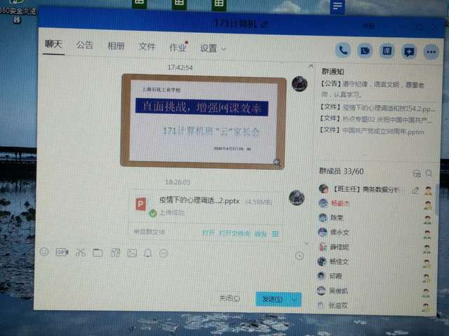 4月5日晚,机电一组171级班级线上“云”家长会正式开始。家长会主题为“直面挑战,增强网课效率”。目的是为更好开展空中课堂,认真落实“停课不停学”的工作指示,在当前疫情形势下增进家校交流沟通。线上家长会由班主任主持,各班学生与家长通过手机端或电脑端参加此次会议。