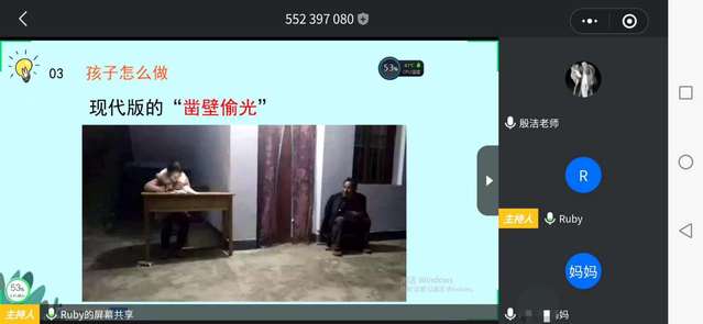 首先徐老师根据各任课老师反馈班级学生学习情况,总结了线上教学开始以来出现的问题和解决的方法,跟家长沟通交流网上学习现状。就老师在教学过程中的担忧和家长在辅导孩子学习过程中出现的困惑,徐老师给出了建议和指导,帮助家长消除顾虑和解决问题。为了进一步引导学生养成良好的居家学习生活习惯,确保学生居家自学效率最高化、自理能力最优化、自主精神最强化,徐老师提出了合理化指导意见。为了进一步引导家长会家庭教育的重视,把这场疫情危机转变为提升家庭教育质量的契机,徐老师和家长们一起探讨如何在非常时期开展高质量的家庭教育,就如何高质量的陪伴孩子提出建议:亲子共读,亲子游戏,亲子交流,亲子劳动等都是家庭教育的载体。没有父母的成长就永远不会有孩子的发展。家长作为孩子的第一任老师,在孩子居家学习期间,如何成为称职的第一任老师?引发家长们深深思考。除此以外,针对目前大多数家长已经复工,而孩子宅家上课,个别家长感到工作和孩子无法兼顾而产生的焦虑情绪,徐老师以心理辅导案例为载体,指导家长对学生进行科学合理的心理指导和情绪,解决家长和学生的焦虑情绪和心理困惑。最后,特教负责人殷洁老师,同时作为171旅游02班《中式面点》线上教学课程开发与实施的教师,对此次家长会做了总结和点评,和家长进行了线上“访谈”,对学生学习情况进行反馈,对线上教学的意义进行推进说明,为家长答疑解惑,各位家长表示受益匪浅。