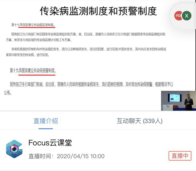 2020年4月15日上午10点,由上海信息技术学校组织的线上课程《新冠肺炎疫情下的相关法律问题》在OurFocus云课堂准时上线,主讲老师是上海资深律师薛安军。我校新进教师董慧、罗茜同其他三百多位教师一同参与了此次课程。