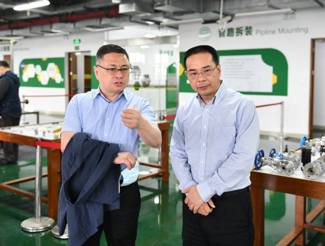 金山区应急管理局局长徐烽与上海石化工业学校校长高炬商讨赛事举办事宜