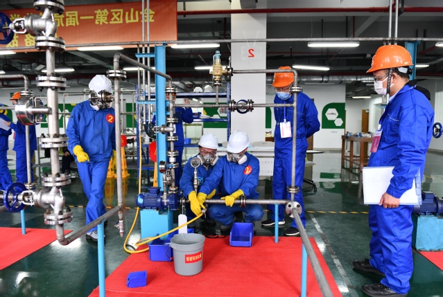 复赛现场设置在上海石化工业学校化工实训大楼,考核采取实操演练、裁判现场打分的形式进行。在比赛中,参赛的32支队伍在规定的时间内,围绕流体输送系统上模拟的管路故障,按照作业标准和规范,熟练地填写作业单,认真分析现场管路故障,队员间分工协作、精准操作,相互尊重、相互配合,纷纷完成故障排除,实现系统恢复运行,有力展示出参赛团队在领导、计划、分工、执行方面的良好能力,展示出团队协作和完成任务的水平。