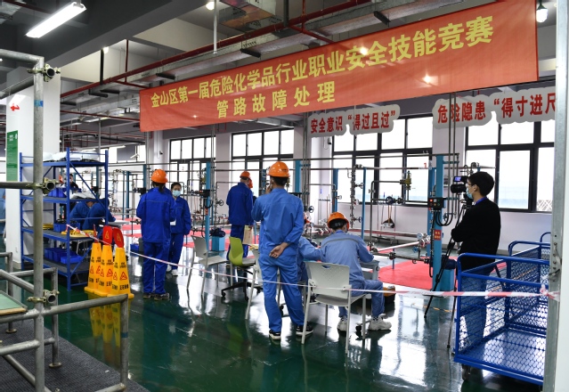 5月26日,由上海金山区总工会、应急管理局、第二工业区联合主办的金山区第一届危险化学品行业职业安全技能竞赛复赛在上海石化工业学校顺利举行。此次技能竞赛分为初赛、复赛、决赛三个阶段进行。在5月16日的初赛中,全区125支代表队,经过激烈的比拼,最终中轻日化科技、帕珂表面处理技术、科凯精细化工、巴斯夫护理化学品、东大化学等32支企业代表队脱颖而出,进入复赛。