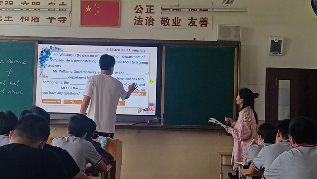 为进一步提高青年教师的教学能力,为他们搭建展示自己的平台,由人事科牵头组织,与教务处、督导室、教研室、名师工作室联合举办青年教师课堂教学评比活动。6月3日上午第1节课,机电科陈小宁老师在博学楼406开设了《UNIT 3 What Is an NC Machine Tool Composed Of》的公开课,督导室、人事科和机电科部分教师参与了听课评课。