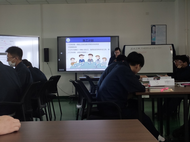 陈老师从生活情境——对家庭卧室照明电路进行改造进行课题的导入,基于行动导向理念实施六步教学法,陈老师利用学习通将新课资讯的学习,分为8个工程队对施工方案进行制定并展示决策,开始前陈老师强调了施工的安全性和规范性。在施工过程中,基于工作岗位有明确的分工利用实训设备模拟施工环境,施工完成后进行展示评价。陈老师充分使用学习通、多元评价等多种方式突出教学重点、突破教学难点,达成教学目标。