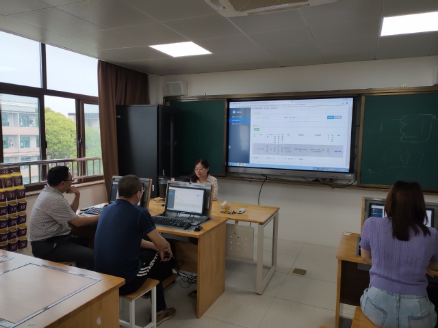 6月11日下午,商务英语教研组在经贸实训楼402室召开教研活动,对我校应用大厅平台新上线的“教研活动”和“公开课管理”服务进行操作试用。