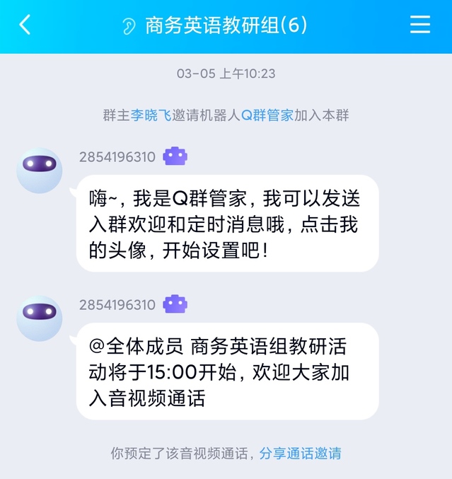 最后组长对于“停课不停学”疫情期间的线上教研,进行了回顾总结。线上教研主要是通过QQ教研群进行。在使用QQ群进行教研时,利用“Q群管家”功能来进行定时预约。在预约时间开始时,“Q群管家”会推送视频邀请,提醒与会老师加入。在教研内容上,曾组织过老师在线观看“在线教学如何赋能传统教学”上海市第四期“双名工程”名师云论坛等活动,教研主题关注在线教学和线下教学的有效衔接。