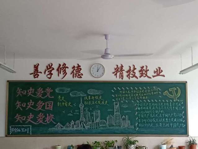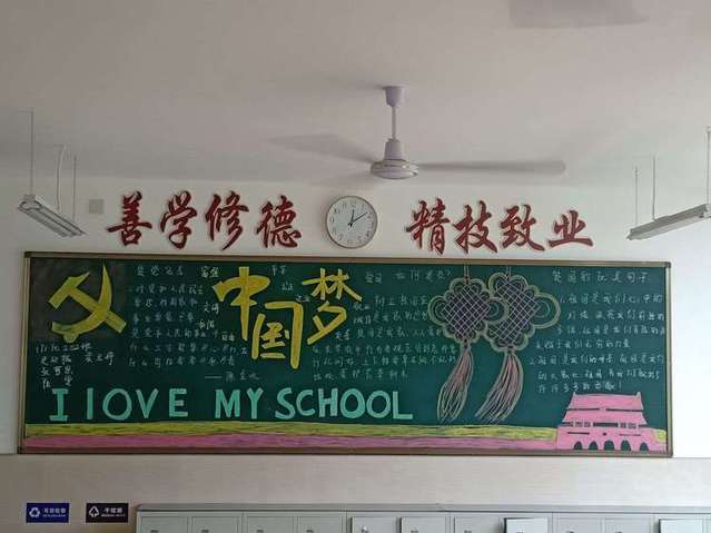 主题设计突出,造型设计有创意,内容积极健康,积极向上,不花里胡哨,内容插画与黑板报内容符合,继续努力。