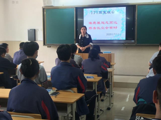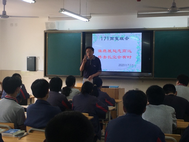 最后,班主任钱老师开展了班级管理、班级建设的相关工作,建立了班级微信群、家长微信群、班级QQ学习群,并且对学生暑期的学习提出了更为细化的要求和实施细则。钱老师希望学生们尽早规划,设定目标,然后坚定不移地向目标迈进,希望在2021年的高考中,171高复的各位同学能够“会当击水三千里”!
