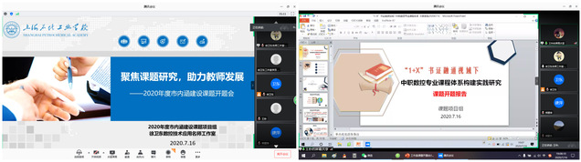 为扎实推进2020年度市级内涵建设课题,2020年7月16日19:00-21:00,通过“腾讯会议”在线方式,徐卫东数控技术应用名师工作室、“1+X”书证融通视域下中职数控专业课程体系构建实践研究课题组召开了课题开题会。原商学院冯伟国教授、同济大学郑建萍教授、教研室谭移民老师听取了课题组汇报,并进行评审,肯定了课题的研究意义,并给出了研究建议,为课题组明确目标、找到路径、做好课题指明了方向。