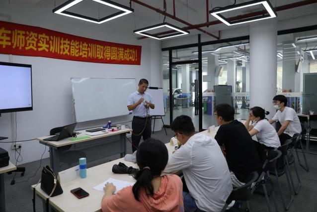 为全面推进我校汽车电子技术应用专业的建设与发展,帮助专业教师理清智能网联汽车专业发展方向、人才培养方向、课程建设思路等,提高专业师资水平,同时为即将开展的四门专业课程(车间生产安全、汽车结构认知与识别、智能汽车传感器检测、智能汽车网络监测)开发奠定专业基础,我校机电科汽车电子组六位教师(朱红权、金花、武朝华、陈文博、臧欢、包健苹)在暑假期间进行智能网联汽车师资实训技能培训。培训期间,大家不畏酷暑,企业教师耐心示范,学校教师虚心学习。