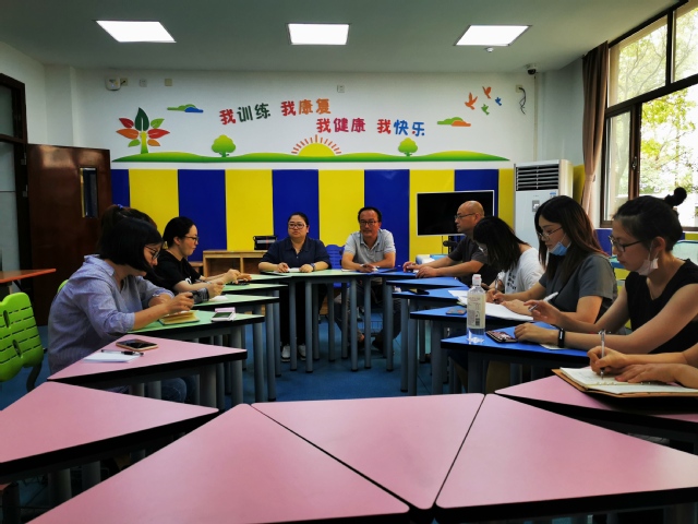 会上,曹俊解读了特教20级新生班的特殊性,再次解读了特教班“双人负责制”管理模式,即一名班主任和一名教辅人员,明确了班主任和教辅人员的分工职责,强调了特教班将面临新的挑战,肯定了特教班主任和教辅人员的付出,特别对20级班主任徐燕汝老师的暑期家访工作提出了表扬,对新生预报到的顺利完成表示倍感欣慰;曹俊鼓励老师们再接再厉,发扬“特教是一家”的优良传统,齐心协力做好迎新工作。然后,殷老师就新学期特教中心五项具体工作进行了统一梳理,协助特教班主任和教辅老师共同整理好新的工作思路,本学期特教中心班级构成“一个校外实习,三个校内就读;两个老班,一个新班,新班构成情况简要说明。”对9月7日特教开学第一天工作做好整体部署,对特教新学期工作几大新变化进行重点梳理,再次明确特教教辅老师各项工作分工,对特教年度项目建设工作进行说明,鼓励特教青年教师更多实践、分析康复类课程性质特点。殷老师对特教中心全体教职人员提出了新希望新要求,期待新学年新气象,尽快适应特教新形势。