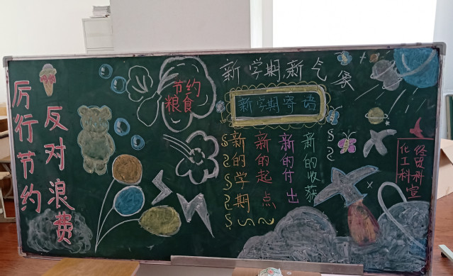 一粥一饭,当思来之不易;一丝一缕,恒念物力维艰。勤俭节约是我们中华民族的传统美德。习总书记近日指出餐饮浪费现象触目惊心,并对制止餐饮浪费做出重要指示,强调要进一步加强宣传教育,切实培养节约习惯。在全社会营造浪费可耻,节约为荣的氛围。为深入贯彻习近平总书记的重要指示精神,进一步弘扬中华民族勤俭节约的传统美德,在新学期第一周,学生会的干部们在老师们的带领下开展了“节约粮食,拒绝浪费”的倡议活动。学生会干部们利用黑板报提倡全校学生爱惜粮食,争做节约粮食的倡导者;文明用餐,争做节约粮食的践行者;监督他人,争做节约粮食的小小宣传员。