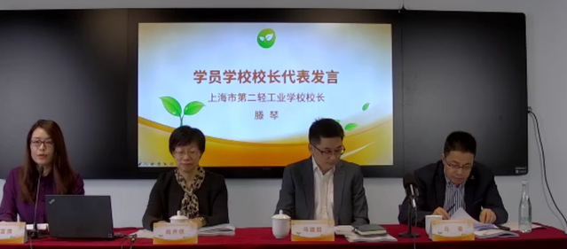 会议的第四环节,学员学校校长代表滕琴老师对上海市新进教师培训工作表示了感谢,并从培训人员选拔、培训设计、保障措施、新进教师培训考核等几方面介绍了她校新进教师培训工作的开展情况。与此同时,腾老师期望新教师要有家国天下的情怀,坚定职业教育的理想信念,练就过硬的教学本领,成为幸福的教师。