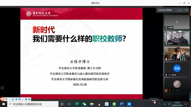 2020年10月28日下午,华东师范大学终身教授、职业教育与成人教育研究所名誉所长石伟平博士,为新进教师提供了一场关于“新时代我们需要什么样的职校教师”的学术“大餐”。通过对职业院校当前教师的基本状况进行分析,展示了我国中等职业学校的未来形态。