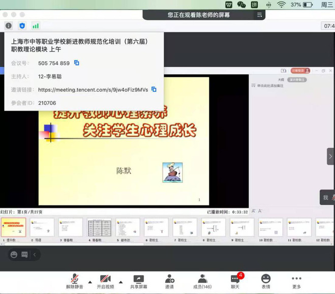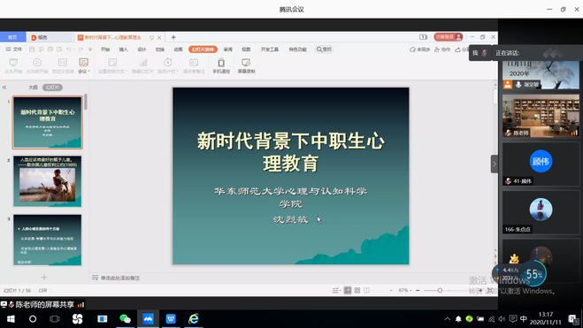 中职学校新进教师规培项目如火如荼地进行,前几次的课程都让我们受益匪浅,本周我们有幸再次聆听了上海市心理协会教育专业委员会秘书长陈默老师的“提升教师心理素养,关注学生心理成长”和华师大心理与认知科学学院沈烈敏老师带来的“新时代背景下中职生心理教育”的课程。