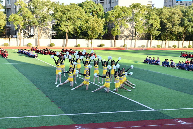 近期在我校第十一届体育节暨第二十届田径运动会的开幕式上街舞啦啦操社团进行了演出。欢快而有节奏感的音乐一出,身着黄色短裙的社员们踏着轻快的步伐迈入田径场,接下来她们用矫健的身姿,婀娜的舞步和整齐的动作点燃了现场的气氛,此起彼伏的加油声和掌声响彻整个操场!此次演出既是一次对平时训练成果的展示又是一次成功的社团考核。