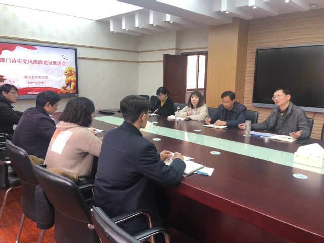 为进一步落实推进所属部门党风廉政建设责任制,3月18日,联合科室党支部组织召开党风廉政建设责任制工作推进会。联合科室的各部门负责人、纪检员参加会议。校纪检监察室主任孙峰与会指导。会议由联合科室党支部书记刁小伟主持。