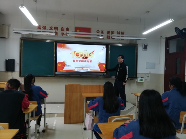 为了认真开展好本次活动,班主任老师们认真备课、精心设计,做了充分准备,分别从“党旗的由来”,“党旗引领我前进”,“新征程 新使命 新担当”三个方面进行了主题教育。1921年7月,中国共产党从南湖的“一叶扁舟”成长为“一艘巨舰”,唤醒了沉睡已久的东方雄狮,拨开了数百年来笼罩于千万仁人志士心头的迷雾,亮出了共产主义的伟大旗帜,点燃了神州大地上的星星革命之火。从此,炎黄子孙们的理想有了归一,有了值得托付的领导人——中国共产党。翻开日历,细数岁月轮回,伟大的中国共产党马上就要迎来自己100岁的生日,走过了100年坎坷而光辉的道路,中国共产党始终代表中国先进生产力的发展要求,代表中国先进文化的前进方向,代表中国最广大人民的根本利益。领导中国人民完成了新民主主义革命,开创了建设中国特色社会主义道路,为实现中华民族的伟大复兴指明了方向。