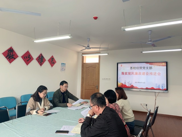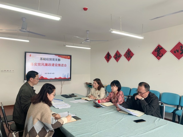 为了进一步落实党风廉政建设责任制度,压实部门负责人的“一岗双责”的责任,完善防控预警措施,梳理排查廉政风险点,4月16日下午,基础经贸党支部在C区407室召开了部门党风廉政建设推进会。会议邀请了纪检监察室孙峰主任前来指导,基础科科长蒋方平、经贸科科长曹俊、基础经贸党支部书记于燕娜、支部纪检员李晓飞参加了此次会议,会议由支部书记于燕娜主持。
