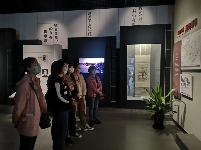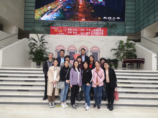 一行人首先来到金山博物馆,进入馆内,浓浓的历史气息扑面而来,在大屏展示的汹涌波涛及海浪声中,大家彷佛一下子被拉回到了几亿年前。“三山叠翠,海涛生莲,一曲寒穴独渟千秋”,短短一句话,让人眼前略过云烟穿梭、沧海桑田,体会到了金山的历史悠久、渊源深远、钟灵毓秀。跟随着博物馆讲解员的脚步,大家从新时期时代来到吴越交会之际,从华亭治邑又来到置位建县阶段,时代在展览中更迭,金山这片土地的风貌也在展览中愈加熟悉。进入新时代,面向“十四五”,金山再次发力,“上海湾区”概念提出并逐步实施打造,为金山的未来描绘出一幅美丽画卷。大家在观看展览过程中一边感慨金山过去的辉煌,同时也对金山的未来更加充满信心和期待。