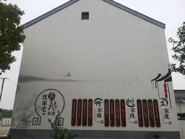 金山作为上海实施乡村振兴发展战略的先行区,突出产业振兴、生态振兴、文化振兴、组织振兴和人才振兴。位于漕泾的水库村,是金山探索国际性大都市的乡村振兴之路过程中的一个试验田。到水库村之前,大家作为“熟悉金山”的“本地人”,并没有抱太多兴趣,脑海中浮现的是泥巴地、旧房屋。然而,从车子开进水库村入村公路起,大家就感受到了这个地方的不同,道路整齐干净,路旁绿树成荫。真正走入村子,更是不禁感慨农村发生的变化。清澈的河道、随处可见的花卉绿植,道路两旁娇艳欲滴却又叫不上名字的花朵吸引了人们极大地热情,大家借助网络工具查询学习起来。行至沈家宅,墙壁上赫然印着的家风家训,也引得人们驻足。“乡村振兴”不仅仅要振兴经济,同时也要振兴文化,打造和谐美丽乡村。经过村老年人活动中心,在当地村民的介绍下,了解到该村为照顾和丰富老年人的晚年生活,还开设了集体食堂,大家纷纷为这个村的领导点赞,大家一致认为“真正把百姓放在心上,才能得到百姓的拥护,才能工作干得更出色”。
