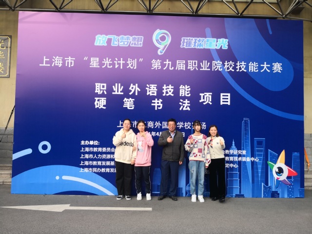 仲春,天朗气清、微风和煦。4月25日清晨6点,我校参加第九届星光计划“硬笔书法”项目的王馨瑶、张婷和曹丽梅在基础经贸支部书记于燕娜和指导老师朱荷生的带领下赴上海市工商外国语学校参加比赛。