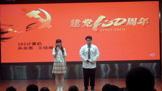 心中有信仰,肩上有担当,脚下有力量。12组选手身着正装、斗志昂扬、声音洪亮、情感充沛,或激昂慷慨、或深情诚挚,或娓妮道来,用最诚挚的语言来歌颂中国共产党的伟大,用激情的演讲抒发自己深厚的爱国之情。190化学工程班顾齐辉同学,用激情澎湃的演讲,带领现场的观众一览中国共产党的百年风华,盛世中华;201汽车电子班徐潇俊同学,用感人至深的语言,歌颂了一首党的赞歌;181科思创孙喆同学,以邱少云的故事为例,讲述了不惧牺牲、传承奉献的精神品质。