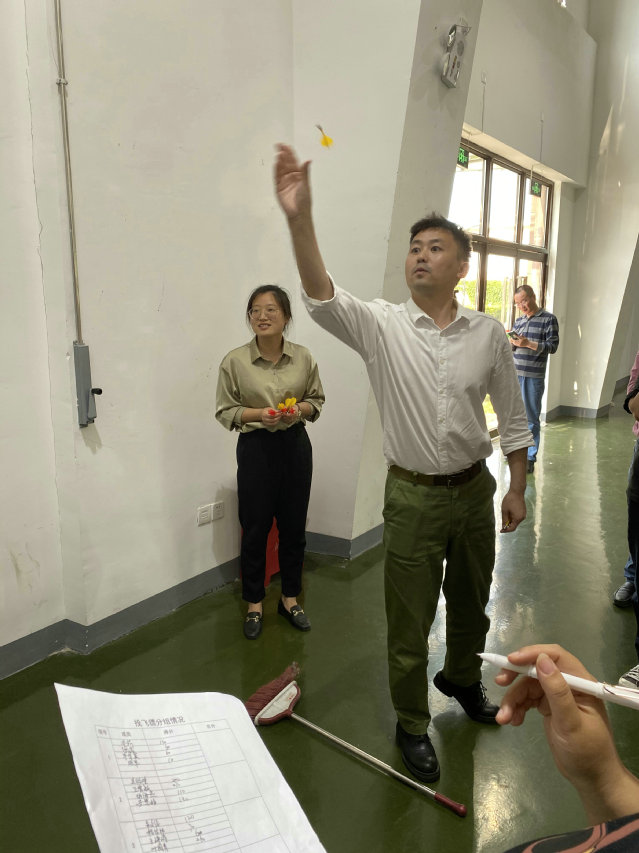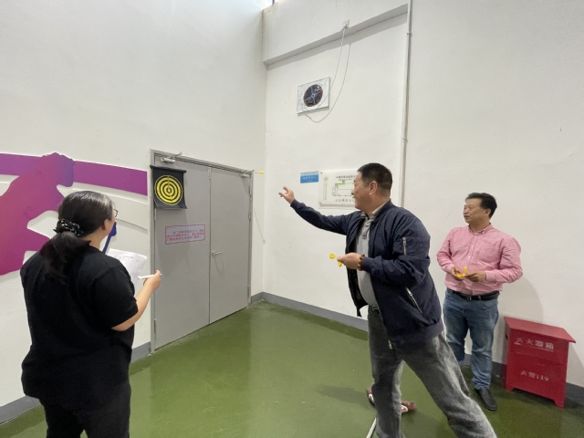随后的投飞镖环节,更是精彩不断,引得大家连连叫好。有的人眼神专注、注意力高度集中,有的人谈笑风生、看似随手一挥。有的老师投中10环,旁边的人情不自禁地鼓掌;有的老师开始没中,人群中纷纷发出加油鼓气的声音,投飞镖成绩好的老师也在旁边给出自己的指导意见。