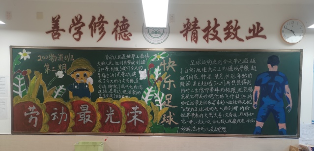 班级:201计算机01 评分:91 评语:板块分布中十分的干净整洁,并且明确的突出了标题重点,字体的创意加上可爱的配图让这个黑板报不显的单调。
