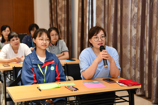 经贸科家委会成员和孩子们共同出席本次亲子团体辅导活动,以别开生面的形式共同体验了亲子互动过程中的不一样。培训由心理辅导中心周清华老师主讲。